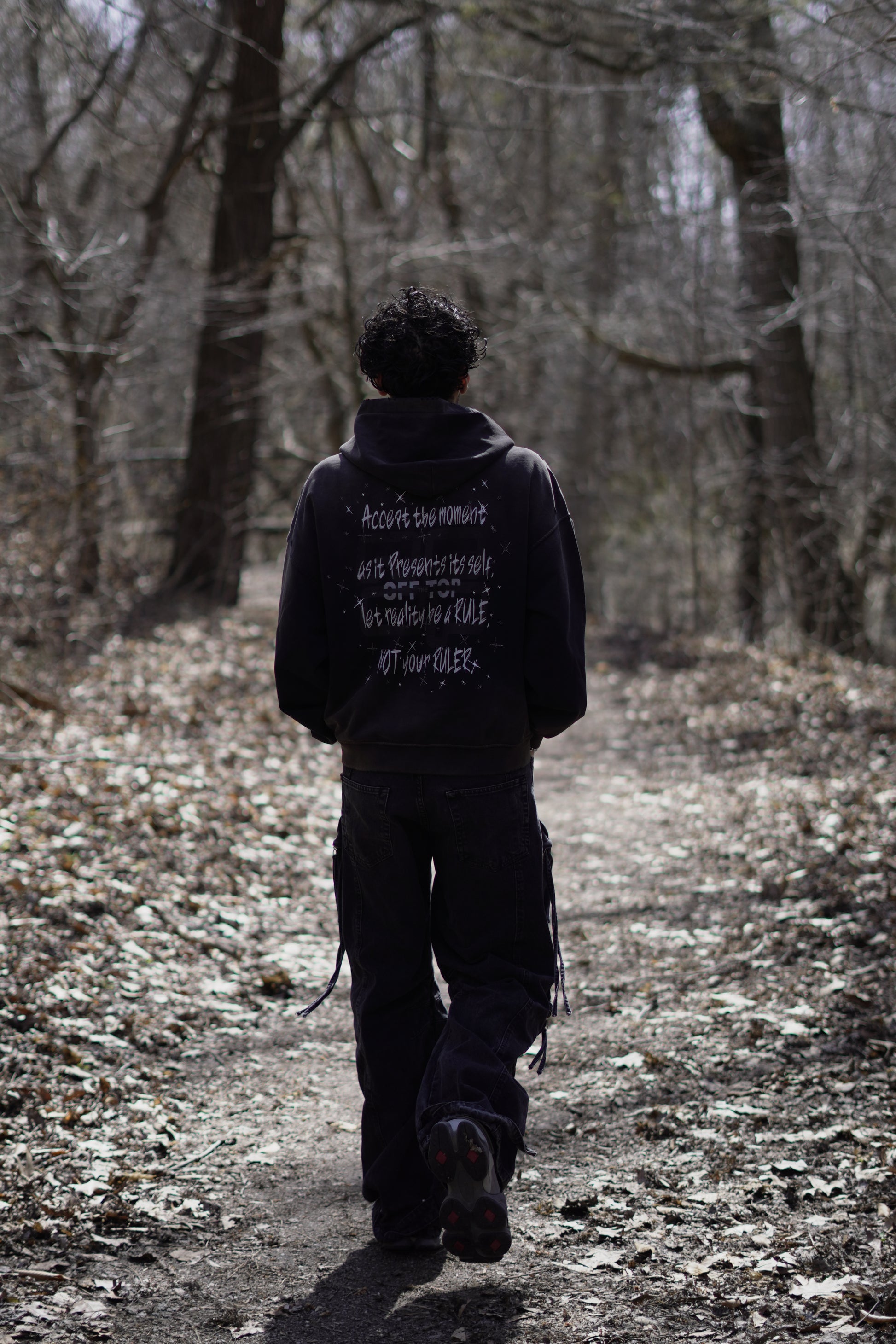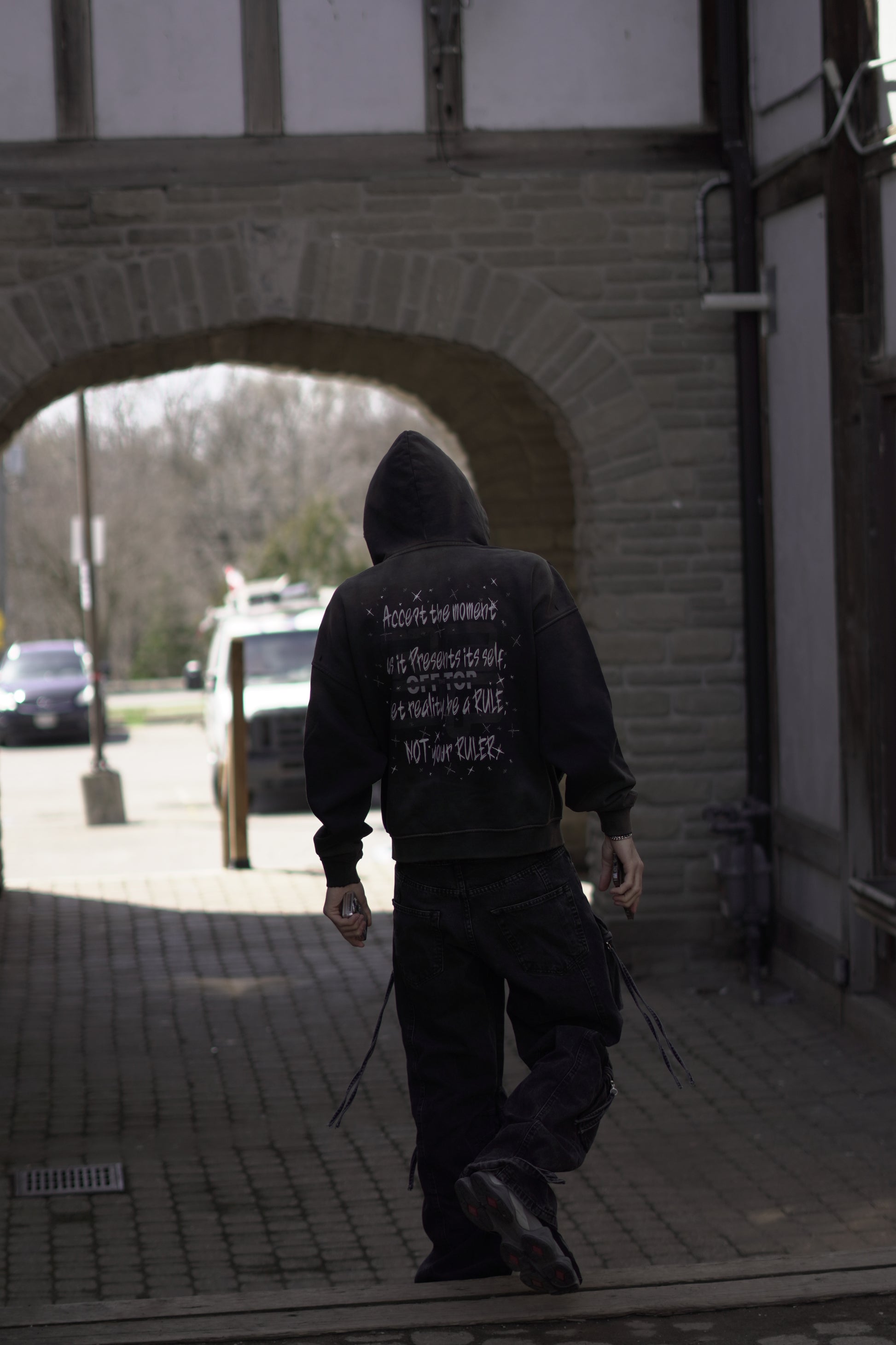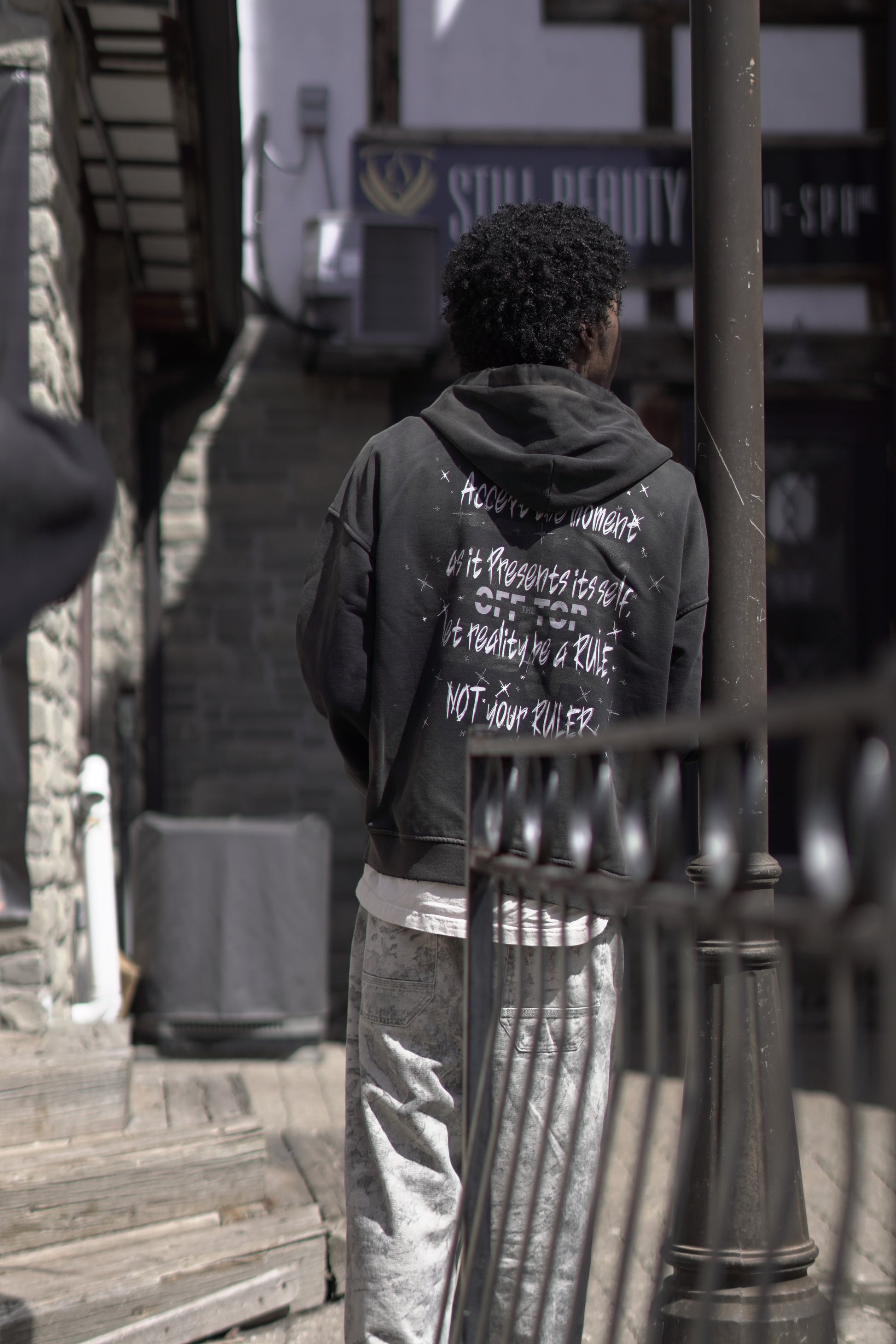 A unisex, weighted, washed and oversized zip-up hoodie with sunfade and distressed material throughout. 100% cotton, 420 GSM and breathable. Models are 172cm (5'8) 56.7kg (125lbs).